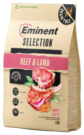 Kompletní bezobilné krmivo Eminent Selection Puppy Beef&Lamb je určeno pro štěňata, březí a kojící feny malých a středních plemen. Obsahuje speciální bylinný komplex a minimálně 85 % proteinů živočišného původu.
