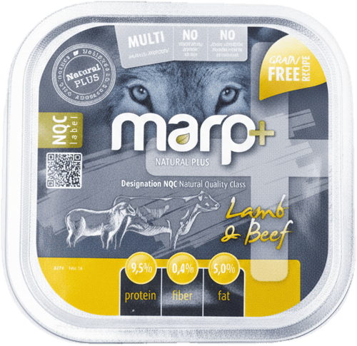 Vanička Marp Natural Plus obsahuje kombinaci jehněčího a hovězího masa, která je vhodná pro štěňata i dospělé psy všech plemen. Krmivo je bez obilovin, obsahuje pouze svalovinu, vnitřnosti, minerální látky a lněný olej. Díky jemné konzistenci a vysoké stravitelnosti je oblíbené i u náročných psů.