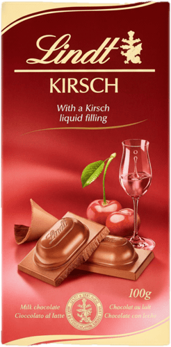 Mléčná tabulková čokoláda Lindt s třešňovou náplní nabízí harmonii ovocných tónů a jemné kakaové chuti.