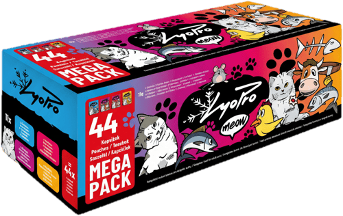 Lyopro Mega Pack cat pouches provide 44 perfectly balanced portions, ideal for daily feeding and guaranteed to satisfy your feline friend's taste preferences. This convenient 3.75 kg pack is a quality Czech product, suitable for cats of all age groups, ensuring easy storage and practical use for busy pet owners.