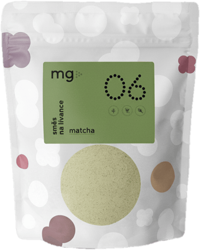 MG Lívance 06 Matcha je instantní směs na přípravu lívanců s příchutí matcha. Nabízí jemně zemitou příchuť zeleného čaje a svěží zelenou barvu. Směs je slazena xylitolem, bez přidaného cukru, a obsahuje vysoký podíl vlákniny. Vyvážené složení z pečlivě vybraných surovin zajišťuje rychlou přípravu snídaně nebo svačiny.