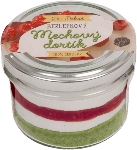 Mechový mini dortík ve sklenici od značky Doktor Pekař. Tento dezert vás okouzlí svou jedinečnou strukturou připomínající mech, která vzniká díky nadýchanému korpusu a sametově jemnému krému. Potěší všechny milovníky sladkého. Vhodný také pro celiaky.