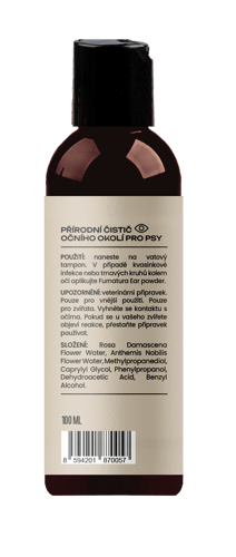 100 mlČistič očního okolí od Furnatury je přírodní produkt vhodný pro každodenní péči o citlivé oční okolí psů. Obsahuje heřmánek a hydrolát z růže damašské, které zklidňují, regenerují a přirozeně dezinfikují pokožku. Je ideální pro psy s alergiemi, dermatitidami nebo podrážděním očního okolí. Neobsahuje alkohol a je šetrný ke všem typům pokožky.