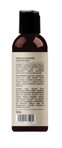 Čistič uší Furnatura je přírodní přípravek vhodný pro pravidelnou péči o uši psů. Obsahuje neem olej, růžovou vodu a výtažky z bylin, které pomáhají čistit a zklidňovat zvukovod. Podporuje hygienu uší a je vhodný jako prevence nebo doplněk při péči o podrážděné uši.