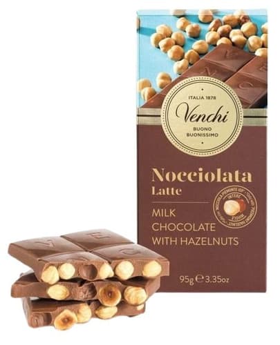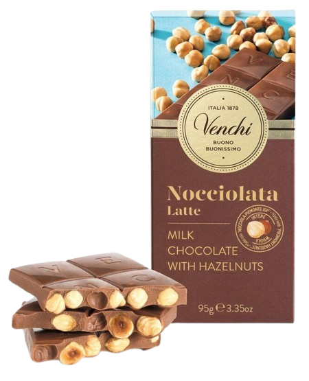Venchi tabulka z mléčné čokolády s celými lískovými ořechy z Piemontu představuje nadčasovou klasiku piemontské čokoládové tradice. Spojení jemné mléčné čokolády a výběrových lískových oříšků je zde povýšeno použitím celých ořechů, které dodávají čokoládě plnou chuť a výraznou křupavost.