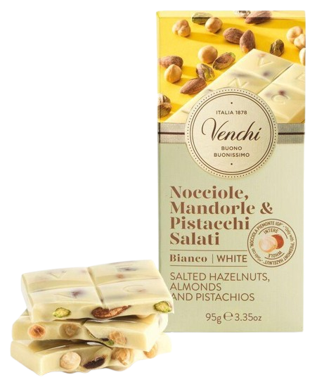 Venchi Bílá čokoláda se slanými mandlemi, pistáciemi a lískovými oříšky