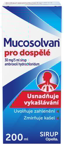 Kontraindikace: Pozorně čtěte příbalovou informaci. Pokud se do 5 dnů (u dětí během 3 dnů) nebudete cítit lépe nebo pokud se Vám přitíží, musíte se poradit s lékařem. Během léčby přípravkem Mucosolvan pro dospělé se nedoporučuje současně užívat léky tlumící kašel (antitusika, např. kodein), které naopak brání vykašlávání hlenu. Nedoporučuje se přípravek užívat v těhotenství, zejména v prvních 3 měsících. Jelikož je ambroxol-hydrochlorid vylučován do mateřského mléka, nedoporučuje se, aby přípravek užívaly kojící matky.