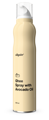 Vilgain Ghee ve spreji je kombinací přepuštěného másla a avokádového oleje. Praktický dávkovač umožňuje přesné a snadné použití.