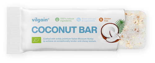 RAW kokosová tyčinka Vilgain Coconut Bar v BIO kvalitě je vyrobena z přírodních ingrediencí, včetně mandlí a květového medu z Itálie. Neobsahuje lepek ani umělé přísady.