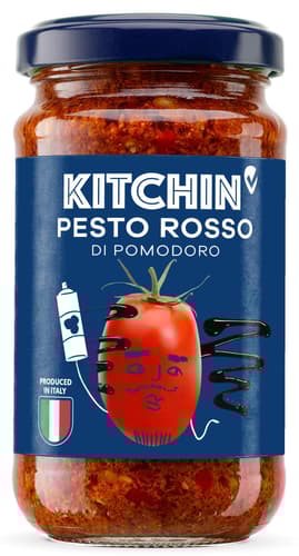Kitchin pesto Rosso skvěle doplní nejen těstoviny – například naše těstoviny Kitchin – ale i pečivo, sendviče nebo pizzu. Výborně se hodí k masu, rybám či grilované zelenině a lze ho využít i jako základ pro marinády a dresinky v kombinaci s naším Kitchin olivovým olejem.