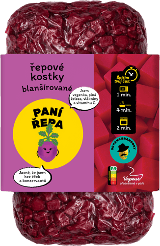 Paní Řepa – Řepové kostky blanšírované jsou praktickým řešením pro rychlou přípravu pokrmů. Kostky jsou předvařené, což usnadňuje jejich další zpracování.