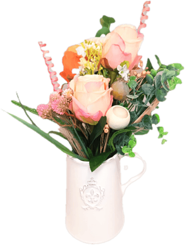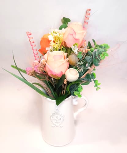 The bouquet is created with attention to detail and a love for craftsmanship. The ceramic teapot gives the product a unique appearance and practicality.