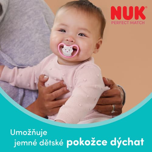 Dudlík Nuk Perfect Match Air je určen pro děti od 6 do 18 měsíců. Je vyroben z měkkého silikonu a navržen pro zdravý vývoj ústní dutiny. Extra velké ventilační otvory zajišťují proudění vzduchu a chrání citlivou pokožku miminka. Ortodontický tvar podporuje přirozený sací reflex a minimalizuje tlak na patro a dásně. Součástí balení je hygienické cestovní pouzdro vhodné i pro sterilizaci v mikrovlnné troubě.