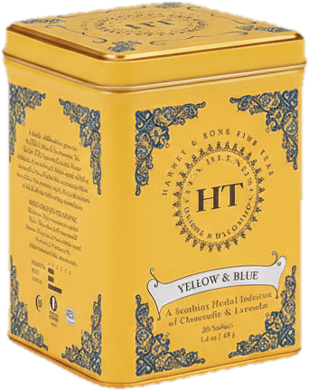 Harney & Sons HT Yellow and Blue je bylinný čaj bez kofeinu, který kombinuje jemný heřmánek, levanduli a chrpu. Tato směs je ideální pro chvíle relaxace a odpočinku. Baleno v elegantní plechové dóze pro zachování čerstvosti.