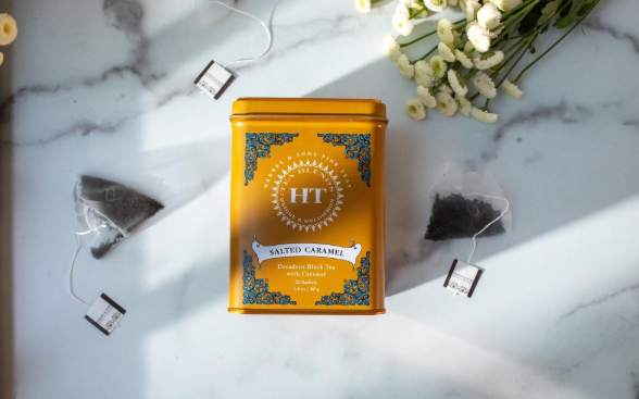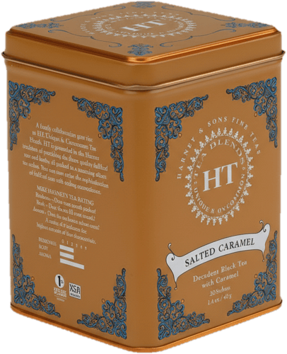 Výrazný černý čaj Harney & Sons HT Salted Caramel kombinuje hedvábný karamel s jemným nádechem himálajské soli. Tato harmonická směs nabízí vyvážený chuťový profil, kde se sladkost a slanost vzájemně doplňují.