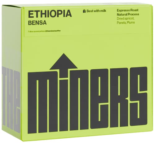 Etiopie Bensa espresso zrnková káva od The Miners nabízí svěží ovocný profil s tóny jahod, bergamotu a jemného medu. Díky promyté metodě zpracování vyniká čistotou chuti a lehkostí, která osloví milovníky moderního espressa.