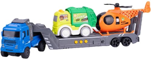 Nákladní auto na setrvačník a baterie se zvukem je ideální hračka pro děti, které milují vozidla. Sada obsahuje nákladní auto o délce 30 cm a dvě menší vozidla popelářů a vrtulníku, vše balené v praktické krabičce.