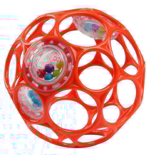 Oranžové chrastítko od Oball navržené pro nejmenší děti. Díky lehkému a flexibilnímu materiálu s 29 otvory je tato hračka snadno uchopitelná i pro malé ručky. Chrastítko vydává zábavné zvuky při každém pohybu. Hračka je prakticky nezničitelná a vhodná pro děti od narození.