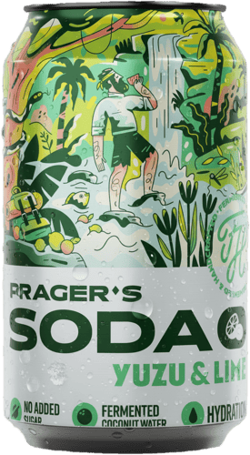 Fermentovaný nealkoholický nápoj s kokosovou vodou, yuzu a limetou, sycený.