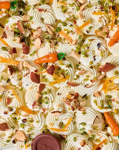 Garantovaná minimální trvanlivost tohoto produktu od doručení nákupu: 2 dny.Pokud by minimální trvanlivost tohoto zboží byla ve vašem nákupu menší, kontaktujte nás a my vám vrátíme zaplacenou cenu zboží v kreditech. Nevztahuje se na zboží ze sekce Zachraň jídlo.mrkev 16 %, VEJCE, cukr, SMETANOVÝ SÝR, TVAROH, šlehačka (SMETANA), slunečnicový olej, PŠENIČNÁ mouka, MANDLOVÁ mouka, citronové pyré, citronová šťáva, marcipán (MANDLE, cukr, glukózový sirup), bílá čokoláda (cukr, kakaové máslo, sušené plnotučné MLÉKO, emulgátor: slunečnicový lecitin, přírodní vanilkový extrakt), jedlá soda, MANDLE, PISTÁCIE, želatina, mletá skořice, vanilkový lusk
