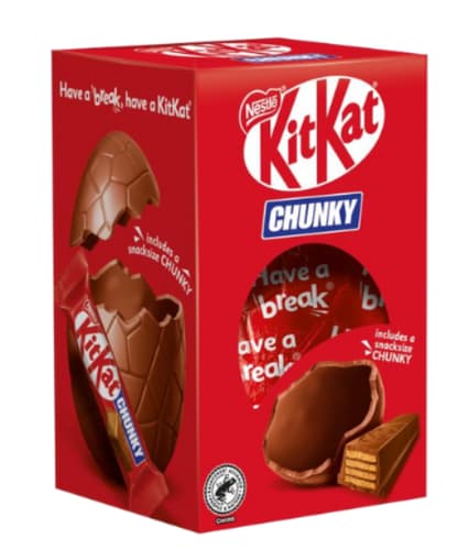 Velikonoční balení KitKat Chunky obsahuje čokoládové vejce a jednu tyčinku KitKat Chunky. Ideální jako sladká pomlázka nebo malá velikonoční pozornost.