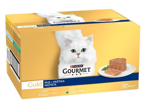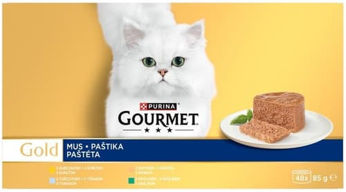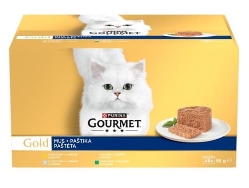 Gourmet Gold konzervy pro kočky kuře, tuňák, krůta, králík paštika 48×85 g
