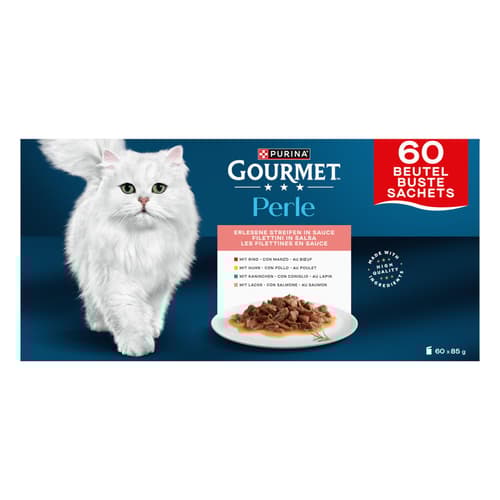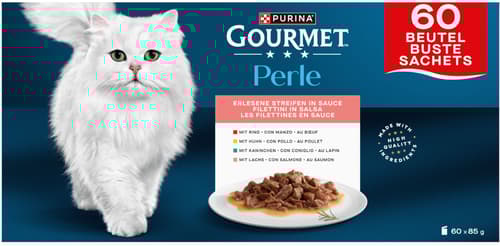 Gourmet Perle kapsičky pro kočky obsahují čtyři lahodné příchutě: hovězí, kuře, králík a losos. Každá kapsička je připravena ve šťávě, která zvýrazňuje chuť masa.