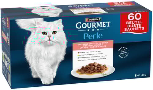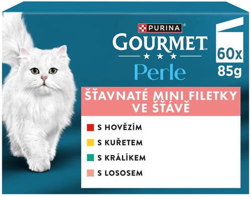 Gourmet Perle kapsičky pro kočky hovězí, kuře, králík, losos ve šťávě 60×85 g