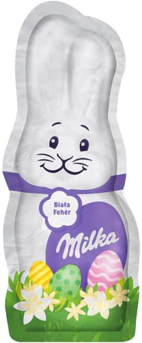 Velikonoční zajíček z bílé čokolády. Ideální jako malá velikonoční pozornost, do výslužky i pro chvíle mlsání.