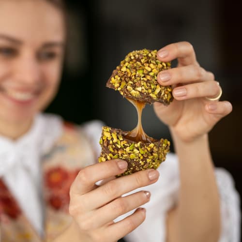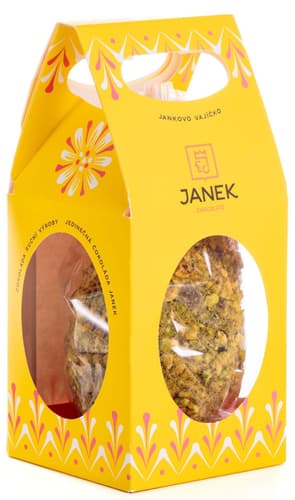 210 gČokoládové vajíčko od Čokoládovny Janek je vyrobeno z mléčné čokolády, plněné karamelem a obalené v pražených pistáciích. Kombinace jemné čokolády, sladkého karamelu a křupavých pistácií vytváří harmonickou chuť.