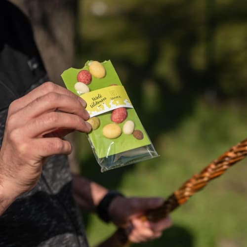 125 gVelikonoční čokoláda od Čokoládovny Janek je vyrobena z bílé čokolády s přírodním zeleným barvivem. Obsahuje mandle obalené v mléčné a bílé čokoládě a pravou vanilku.