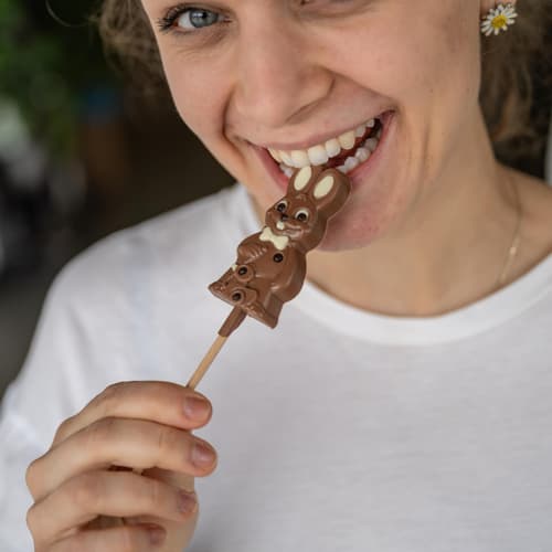 Čokoládovna Janek Barevné čokoládové lízátko – zajíc