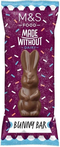 18 gČokoládová tyčinka ve tvaru zajíčka od Marks & Spencer je vyrobena z krémové čokolády bez mléka. Obsahuje kousky rýžových sušenek, které dodávají texturu a chuť.