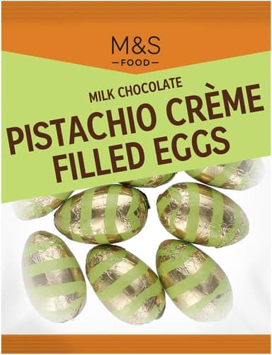 Marks & Spencer Mini vajíčka ze švýcarské mléčné čokolády s krémovou pistáciovou náplní