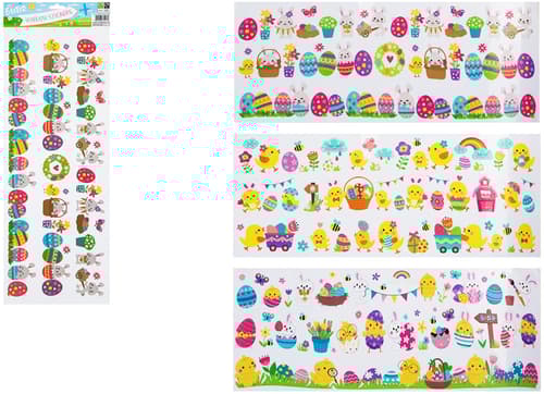 Velikonoční gelové samolepky na okna jsou ideální pro vytvoření veselé velikonoční scény na skle nebo jiných hladkých površích. Snadno se připevňují i odlepují a nezanechávají stopy. Skvěle se hodí jako součást velikonoční výzdoby.