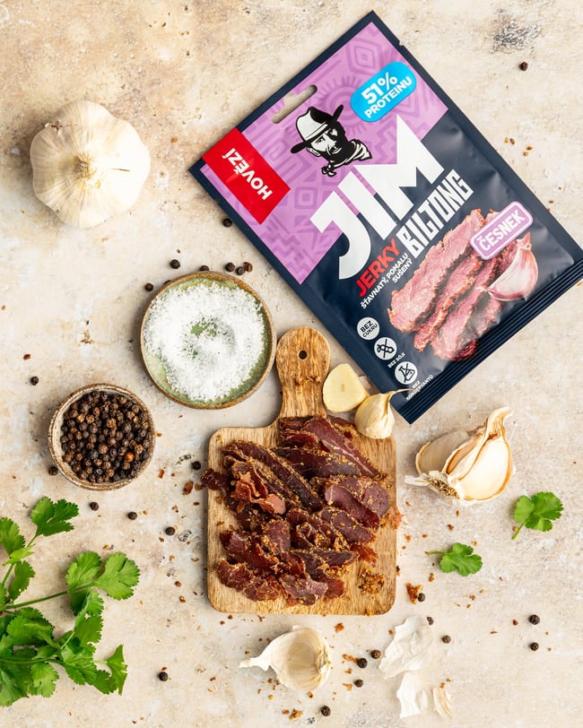 Jim Jerky biltong hovězí česnek