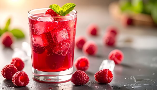 voda, tekutý invertní cukr, malinový , višňový destilát, malinový koncentrát, přírodní aroma