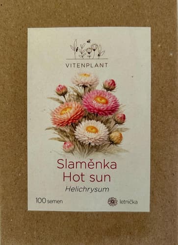Slaměnka od Vitenplant je nenáročná letnička, která přináší do zahrady veselou barvu. Díky výrazným květům v odstínech žluté, oranžové, růžové či bílé je ideální pro okrasné záhony, letní kytice a sušené dekorace. Květy dlouho vydrží i po usušení.