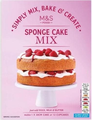 Velká Británie,Směs na piškotový dort od Marks & Spencer je praktickým pomocníkem pro rychlou přípravu dezertů. Stačí přidat vejce, mléko a máslo a můžete vytvořit piškotový dort o průměru 20 cm nebo 12 cupcakes.