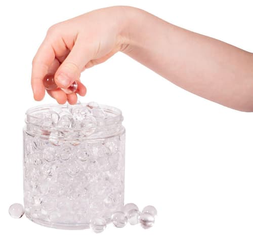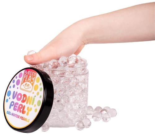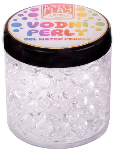 Česká republika,Vodní perly čiré jsou gelové kuličky nabobtnané vodou. Produkt je dodáván v plastové nádobce o objemu 500 ml s plastovým víčkem. Vhodné pro domácí použití i dětské kolektivy.