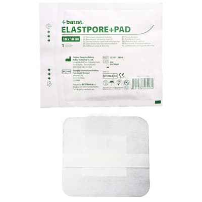 Zdravotnický prostředek. ELASTPORE+PAD je elastická sterilní náplast na rány s absorpčním polštářkem. Klíčové vlastnosti: Aplikovatelná na oblých a kónických částech těla. Savý polštářek má vysokou absorpční schopnost a je opatřen povrchovou vrstvou zabraňující přilepení na ránu. Netkaný textil náplasti je propustný pro vzduch a vodní páru. Velikost náplasti je 10 cm x 10 cm. Balení obsahuje 1 ks.