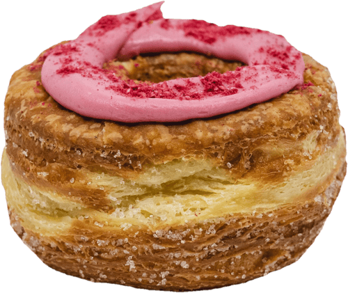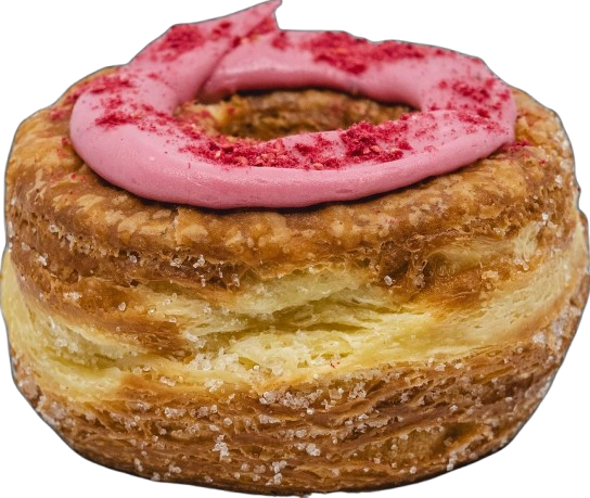 Crobliha plněná dokonale jemným citronovým krémem a přelitá malinovým toppingem. Crobliha je výjimečný produkt kombinující donut z croissantového těsta, který se osmaží jako kobliha.
