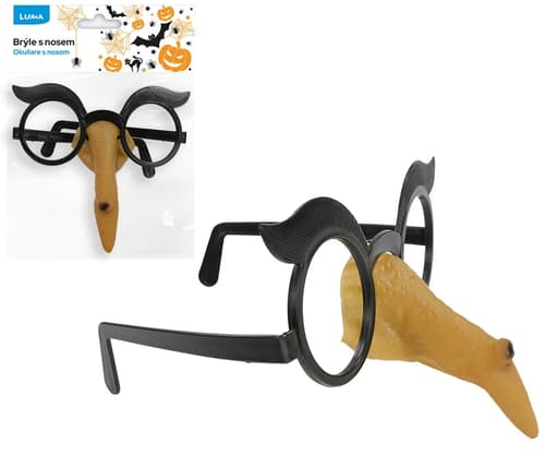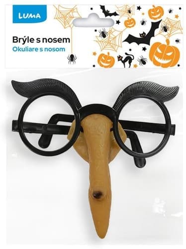 Čarodějnické brýle s nosem jsou karnevalový doplněk pro rychlou proměnu kostýmu. Hodí se na tematické večírky. Lehké brýle zvýrazní výraz obličeje díky výraznému nosu a pomohou dotvořit čarodějnický nebo komický vzhled.
