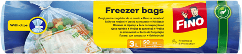 FINO 3 L freezer bags are designed for storing food in both the refrigerator and the freezer. The pack contains 50 microtene polyethylene bags with a thickness of approximately 25 μm.