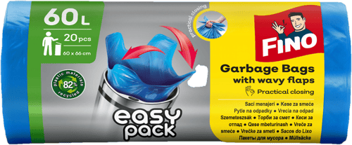 FINO HD bags Easy Pack are 60 L waste bags on a roll with the Easy Pack system for easy dispensing. The pack contains 20 pcs; film thickness is 18 μm.