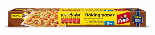 FINO Multibake Baking Paper is a silicone-coated non-stick baking paper roll measuring 8 m × 38 cm, suitable for most standard baking trays. It helps you bake without greasing and makes clean-up easier.
