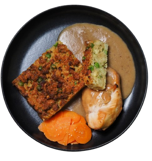 Garantovaná minimální trvanlivost tohoto produktu od doručení nákupu: 3 dny.Pokud by minimální trvanlivost tohoto zboží byla ve vašem nákupu menší, kontaktujte nás a my vám vrátíme zaplacenou cenu zboží v kreditech. Nevztahuje se na zboží ze sekce Zachraň jídlo.Nádivka 50 % [mléko, kostky do knedlíků 24 % (pšeničná mouka, pitná voda, pekařské droždí, jedlá sůl s jódem (jedlá sůl, jodičnan draselný)), pasterovaná vaječná melanž, uzené vepřové maso (vepřové maso 90 %, pitná voda, jedlá sůl s jódem (jedlá sůl, jodičnan draselný), konzervant: dusitan sodný, glukózový sirup, kouř z bukového dřeva, stabilizátor: difosforečnany; antioxidant: askorban sodný; kouřové aroma, extrakty koření), hrášek, petržel nať, kypřicí prášek (kypřicí látky: dihydrogendifosforečnan sodný, hydrogenuhličitan sodný; kukuřičný škrob), jedlá sůl s jódem (jedlá sůl, jodičnan draselný), muškátový ořech mletý], kuřecí šťáva 20 % [kuřecí vývar (pitná voda, kuřecí kosti a maso, cibule, mrkev, celer, česnek, jedlá sůl s jódem (jedlá sůl, jodičnan draselný), slunečnicový olej, směs koření), kuřecí výpek, cibule, slunečnicový olej, pšeničná mouka, jedlá sůl s jódem (jedlá sůl, jodičnan draselný), černý pepř, bobkový list], vařené kuřecí prso 18 % [kuřecí prsní řízek 96 %, slunečnicový olej, jedlá sůl s jódem (jedlá sůl, jodičnan draselný)], sezamová mrkev 12 % (mrkev 97 %, slunečnicový olej, pražená bílá sezamová semínka 0,7 %).