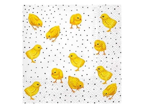 Velikonoční ubrousky s motivem žlutých kuřátek přinášejí jarní atmosféru na váš stůl. Jsou vyrobeny z pevného třívrstvého papíru, který dobře saje.