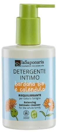 laSaponaria intimní mycí gel s měsíčkem jemně čistí intimní partie a pomáhá udržet jejich přirozenou rovnováhu. Je navržen pro každodenní hygienu i období zvýšené citlivosti. Obsahuje zklidňující extrakt z měsíčku, aloe a lopuchu a je doplněn o kyselinu mléčnou pro pH 4,5. Gel je vhodný pro celou rodinu, včetně těhotenství, a vyhovuje i citlivé pokožce.