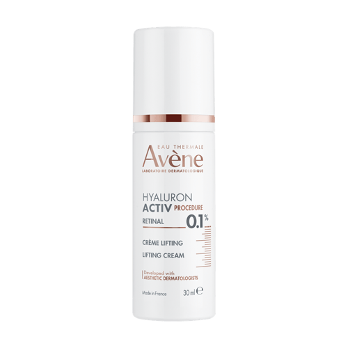 AVENE Liftingový krém vyvinutý s klíčovými aktivními látkami uznávanými v estetické medicíně, které jsou obsaženy v čisté a koncentrované formě. Obsahuje 0,1 % retinalu. Retinal je 3x účinnější než retinol. Zpevňuje kontury obličeje a aktivuje buněčnou aktivitu. Pleť vypadá o 7 let mladší. Tento krém lze používat samostatně nebo jako doplněk k estetickým procedurám (injekce, laser, peeling) a zlepšit tak jejich výsledky. Dermatologické laboratoře Avène přichází s novinkou Hyaluron Activ Procedure: řada vyvinutá ve spolupráci s estetickými dermatology, která přenáší nejnovější poznatky estetické dermatologie do dermokosmetiky. Jeho multikorekční účinek proti vráskám je založen na trojici klíčových složek: Retinal 0,1 %: koriguje vrásky. Kyselina hyaluronová: hydratuje a zlepšuje pružnost pokožky. Niamcinamid 2 %: stimuluje buňky a prodlužuje jejich životnost. Zmírňuje projevy stárnutí. Benefity: Klinicky prokázaná účinnost. Zpevnění kontur obličeje. Korekce vrásek. Krémová a hebká textura. 97 % přírodních složek. Veganské složení. Balení obsahuje 30 ml.